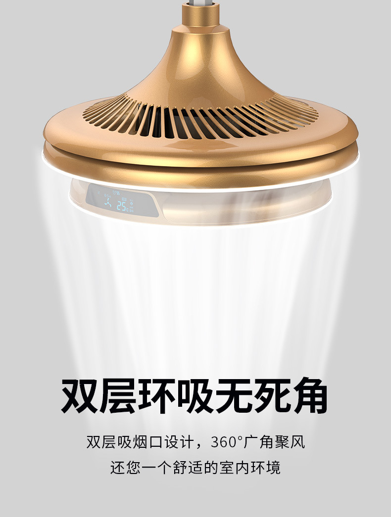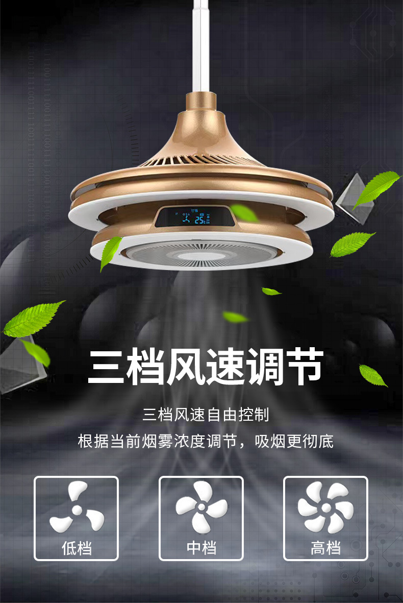 雙層環吸無死角;煙霧感應自動調檔;三層濾網釋放富氧離子……