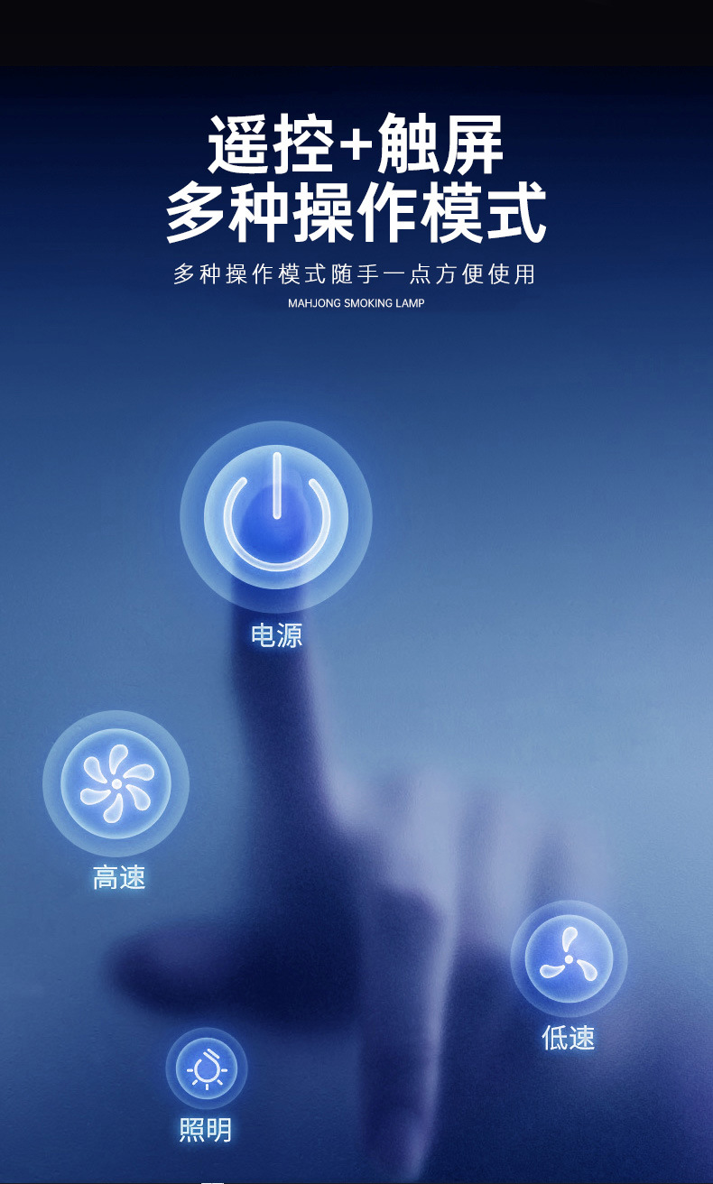 棋牌室、麻將館、茶樓等場所除煙、除塵、除異味、照明裝飾用。