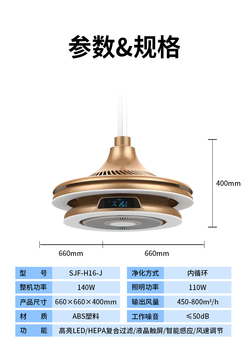 【功能】高亮LED/HEPA復合過濾/液晶觸屏/智能感應/風速調節
