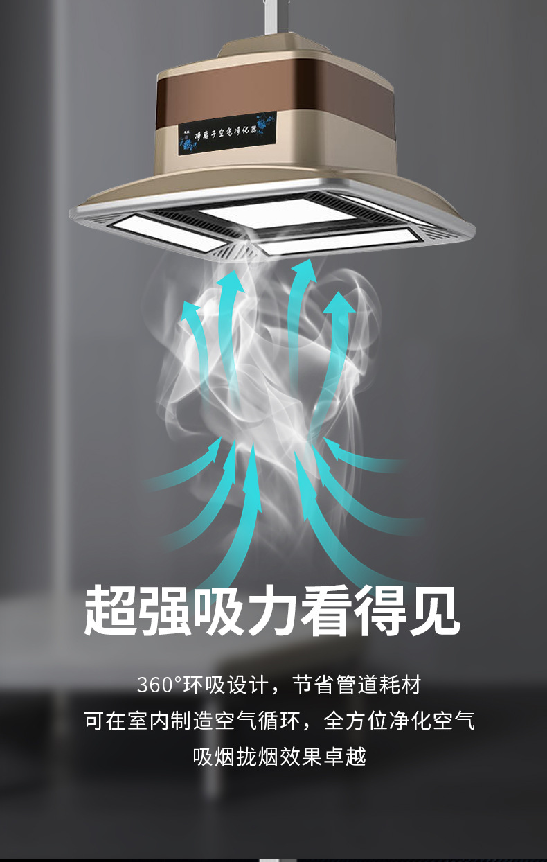 酒店、棋牌室、包間、KTV、會所、候車廳等除煙除塵凈化燈,集吸煙、照明、裝飾三位一體